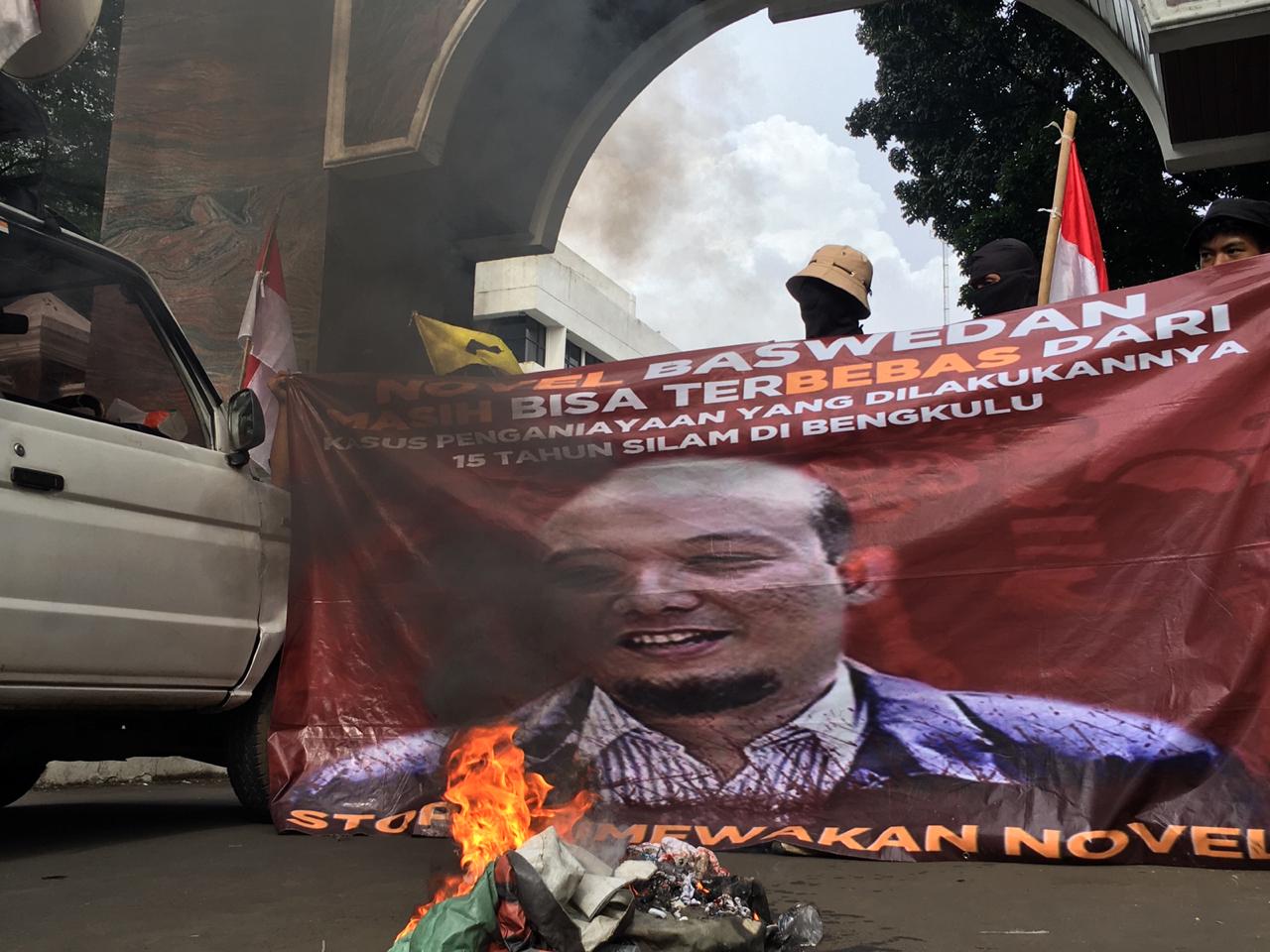 Aksi Diwarnai Bakar Ban, Corong Rakyat : Sudah Waktunya Kejagung Adili Novel Baswedan!