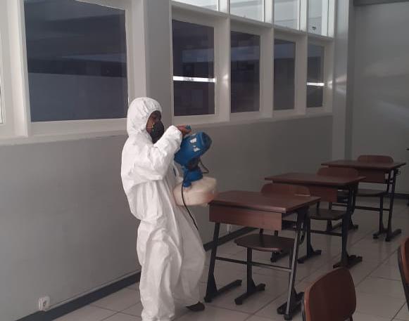 Untuk menjaga lingkungan tetap bersih dan sehat, maka dilakukan penyemprotan disinfectan secara berkala di setiap kelas dan ruang-ruang strategis lainnya.