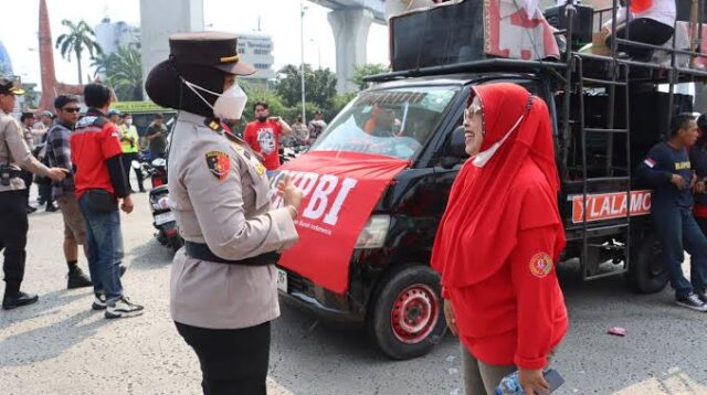 Jakarta – Polwan dari Polres Tanjung Priok menunjukkan aksi humanisnya saat melakukan pengamanan aksi Hari […]