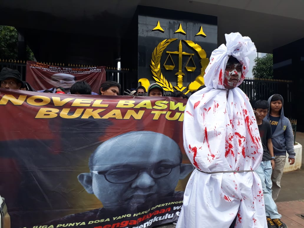 Ada Pocong di Kejagung, Corong Rakyat : Biar Tak Matikan Hukum Seperti Pocong, Proses Novel Baswedan!